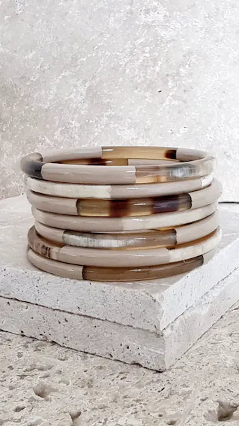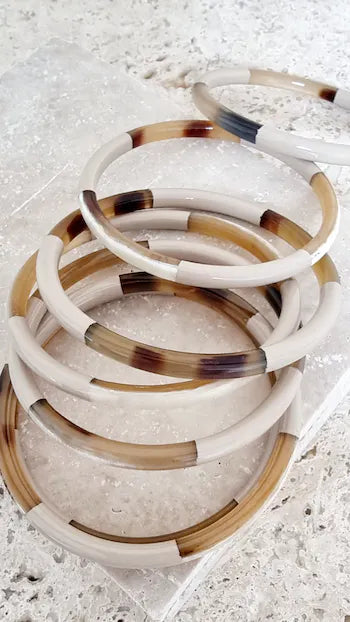 Les bracelets sont façonnés à la main par des artisans à partir de corne de buffle.