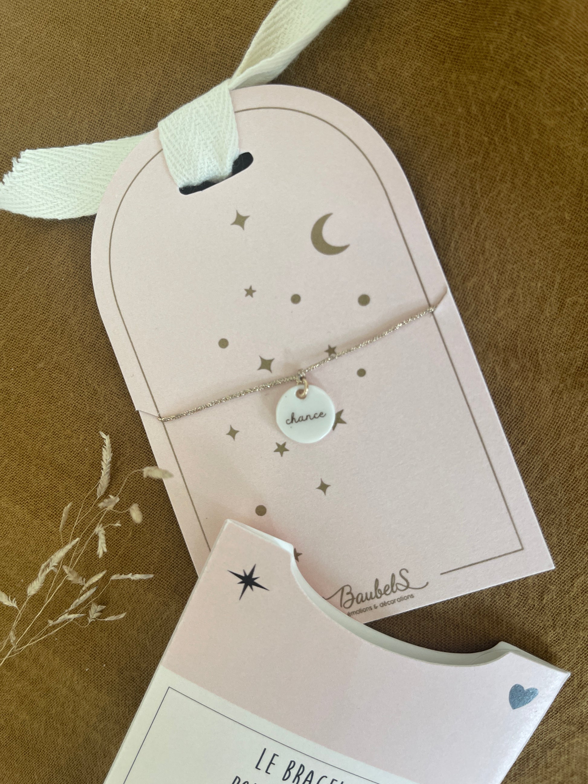 Retrouvez le message Chance 🍀 sur un délicat médaillon en porcelaine. On peut le porter seul ou l'associer aux autres médaillons pour multiplier les jolis messages.