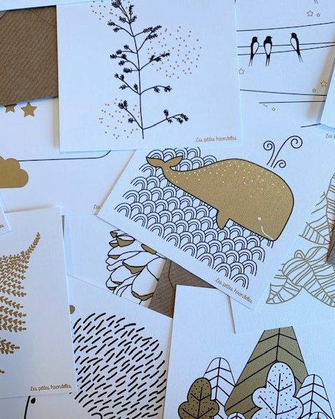 Illustration imprimée sur papier d’art texturé 350g, format 10x10cm, accompagnée de son enveloppe en papier kraft recyclé.