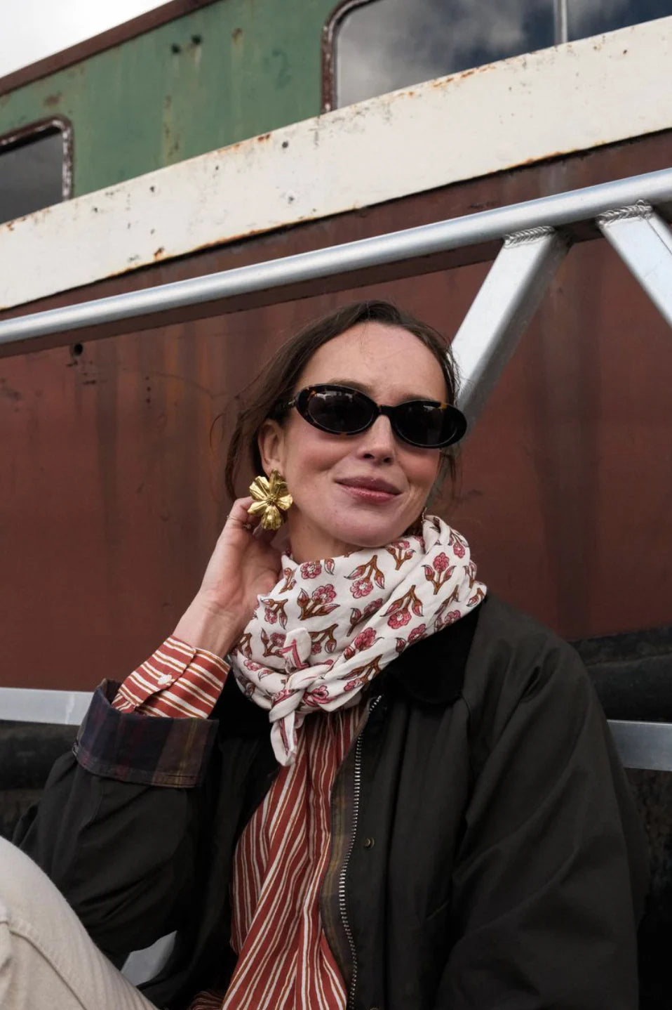 Imprimés à la main à Jaipur avec la technique traditionnelle du block print, chaque foulard se distingue par ses nuances uniques obtenues grâce à des pigments naturels. De petites irrégularités peuvent apparaître, signe de leur fabrication artisanale et de leur authenticité.