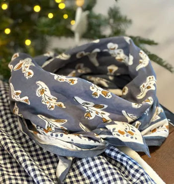 Chèche en coton imprimé à la main en Inde, très souple et doux.